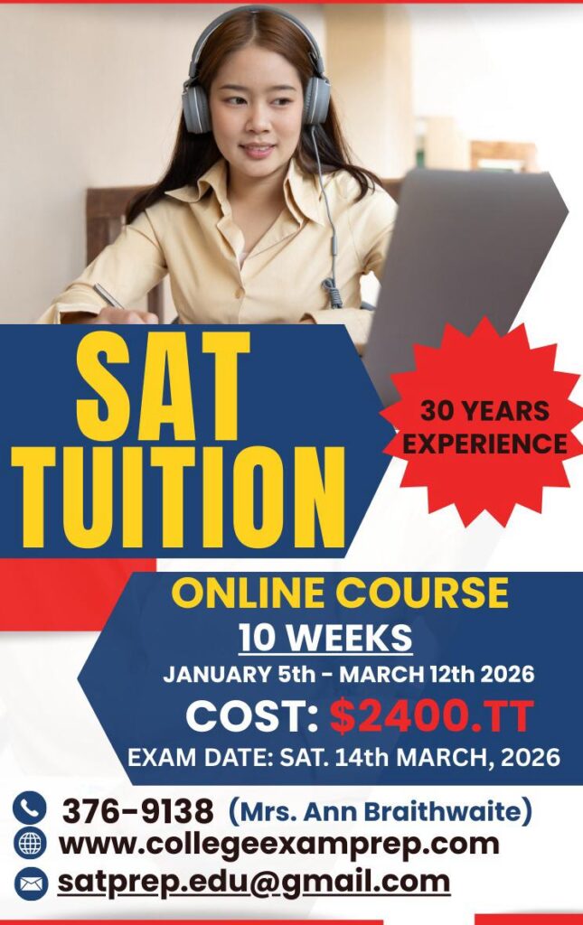 With 30 years of experience, Mrs. Ann Braithwaite and her team of seasoned instructors prepare students in Trinidad and Tobago and abroad for the rigours of the SAT exam and provide guidance with the United States college application process.