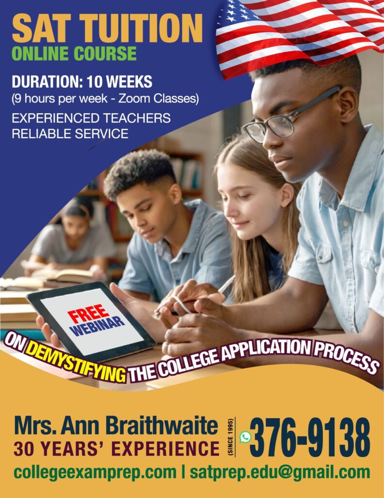 With 30 years of experience, Mrs. Ann Braithwaite and her team of seasoned instructors prepare students in Trinidad and Tobago and abroad for the rigours of the SAT exam and provide guidance with the United States college application process.